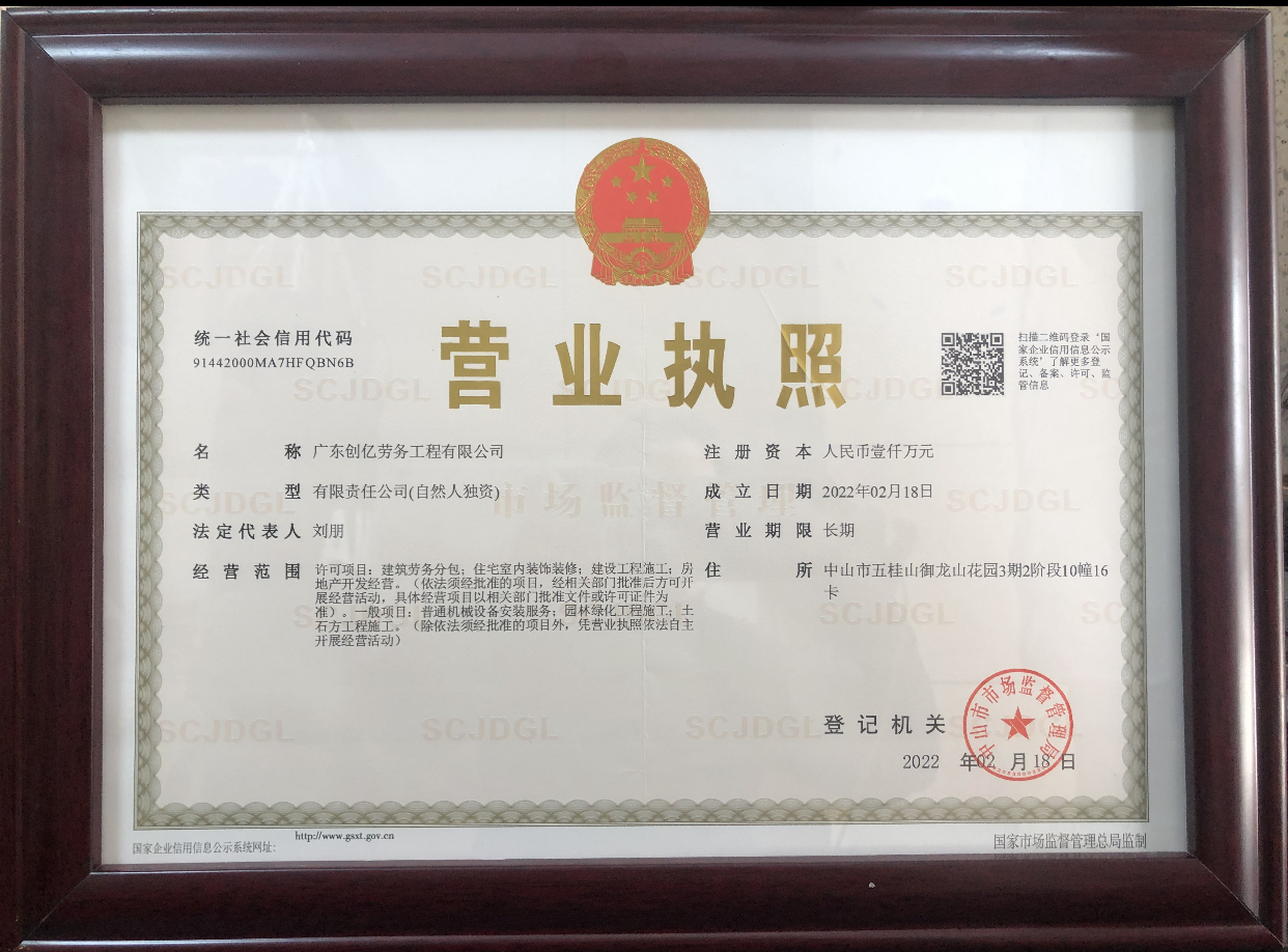 創(chuàng)億勞務(wù)工程有限公司系一家專注于地產(chǎn)地開發(fā),建筑工程施工,建筑工程分包,土石方程施工,林園綠化工程施工,內(nèi)室裝修裝飾的公司。公司立足于珠三角近20多年,擁有近1500人的專業(yè)團(tuán)隊(duì)。承接的建筑工程有廣東省中山市凱茵又一城,雅居樂御龍山,雅居樂萬象郡,雅居樂珠海國際花園,湖南雅居樂灰湯依蕓小鎮(zhèn),惠陽雅居樂花園,陽光新城地產(chǎn),江門新會(huì)雅居樂美的項(xiàng)目等工程。公司始終堅(jiān)持質(zhì)量至上,誠實(shí)守信的經(jīng)營理念。通過不斷的技術(shù)積累和人才沉淀立足于珠三角。在住房領(lǐng)域,公司始終堅(jiān)持質(zhì)量至上,誠實(shí)守信,力爭成為無愧于時(shí)代的企業(yè)。